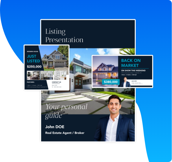 Create your branded realtor email marketing campaigns and materials with our stunning templates. Boost your creativity using our AI generator (powered by OpenAI). Organize your visual assets and template library using our Digital Asset Management feature, and invite everyone in your team to do the same online. Get your materials out there and start attracting more leads to your real estate business.