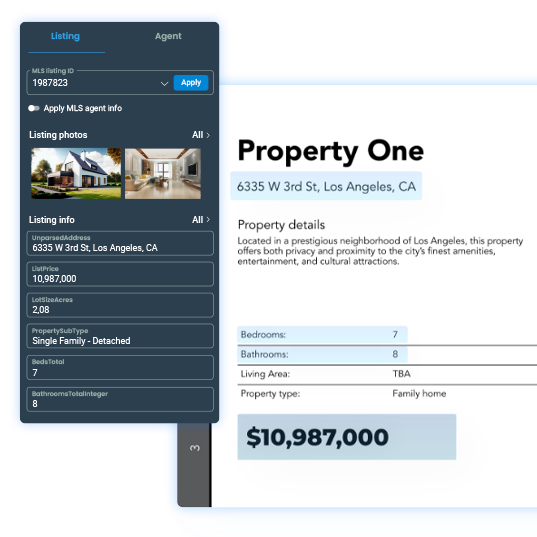 Market 90% faster Listing marketing documents created and personalized under a minute with MLS and agent info.