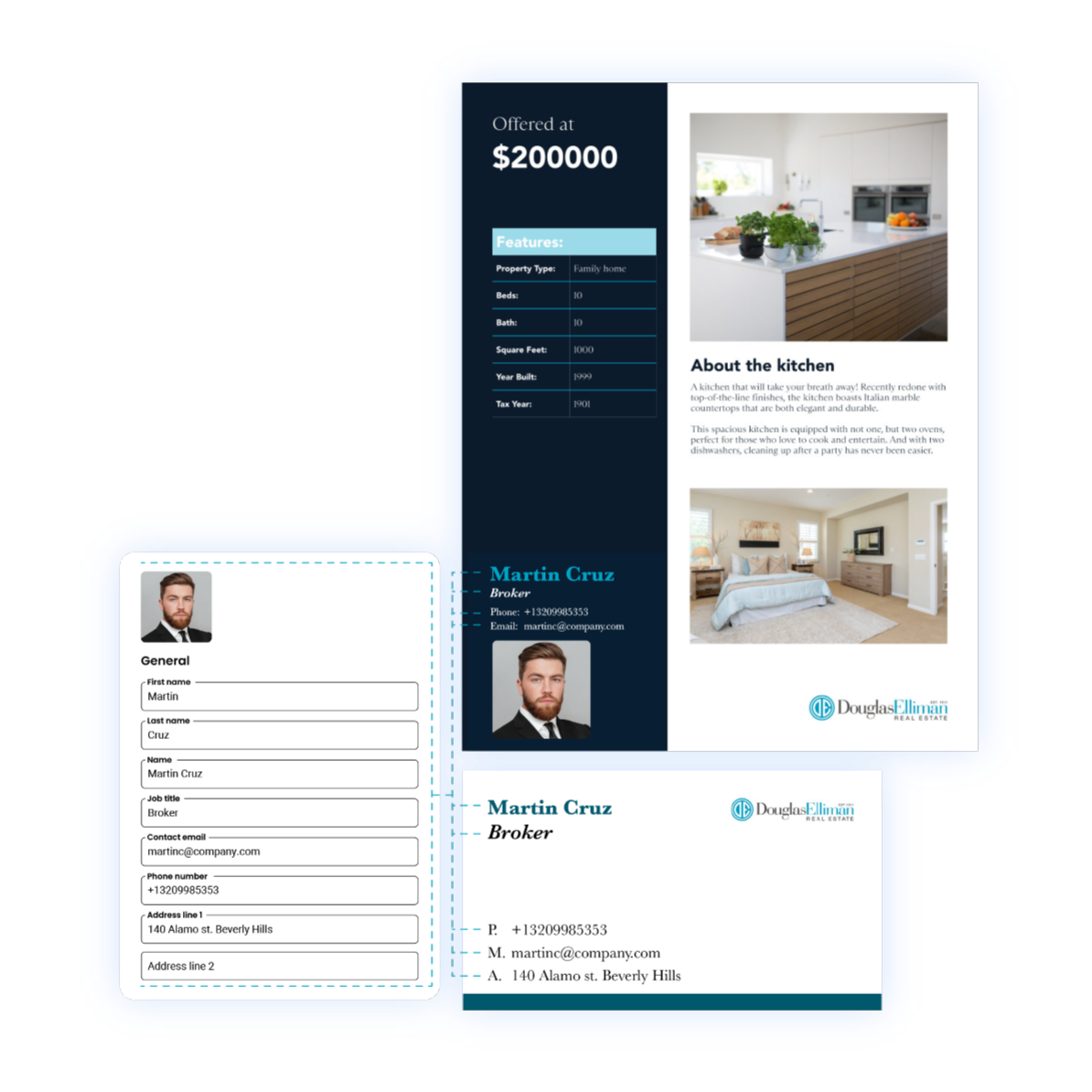 Automatically scan for new MLS listings to generate and promote them with social media and print materials.