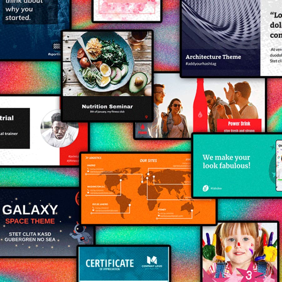 The template and content library are fully customizable and provide inspiration to get started on any creative project. Along with templates, you’ll find easy-to-edit tables, text panels, photo grids, stock photos, and illustrations to deliver professionally designed results.
